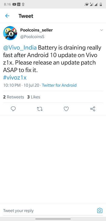 Users of the Vivo Z1X are not spared either. Many of them are reporting similar battery drain issues after the update to Funtouch OS 10. However, some are also reporting issues to do with RAM management, choppy animations and a glitchy launcher after this update. Here are some of these reports.