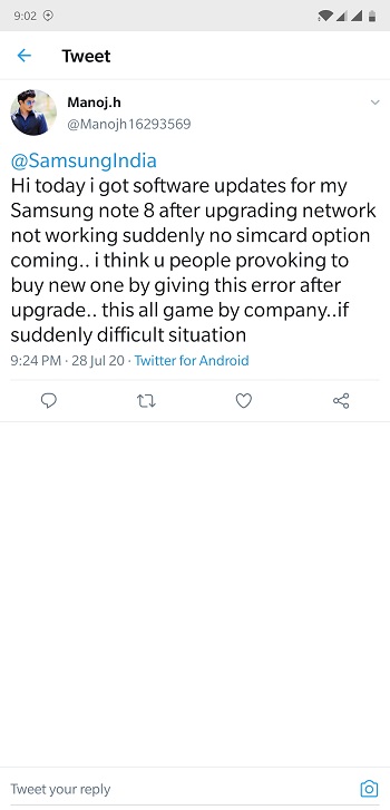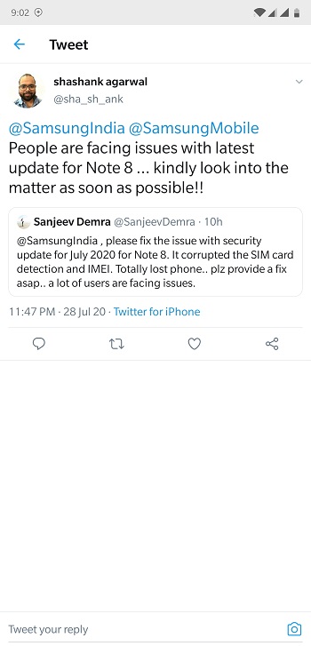 The majority of affected users say they’re facing a SIM card read error, No IMEI Number and as a result of these, they cannot login to Samsung services. The SIM manager on these devices also remains frozen and some have tried the basic troubleshooting; resetting network settings and even Factory resetting their devices, all in vain.
