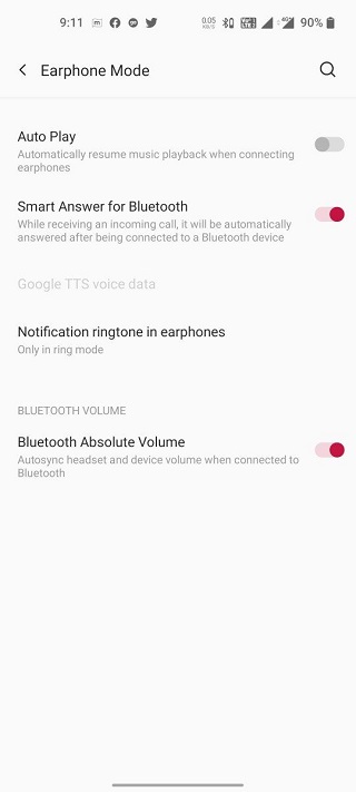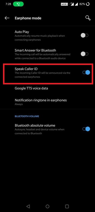 Below is a side-by-side view of the Speak caller ID option present on OnePlus 7T and the same is missing on the OnePlus 8T under the Earphone Mode settings.