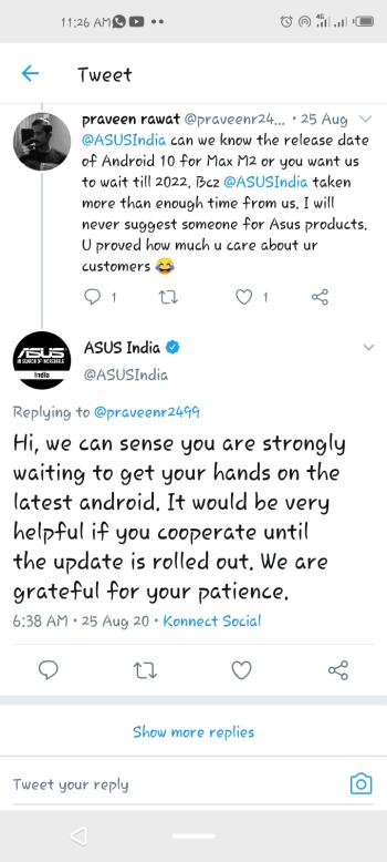 Several months later and the status quo remains. Attempts by frustrated users to get information from Asus regarding the status of Android 10 on their units are met by a non-commital, generic response asking them to be patient.