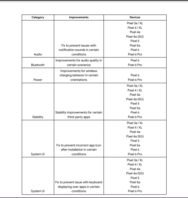 | Android 12 | Pixel 3 and Pixel 3 XL | Unload to load Google apps | Unacknowledged |