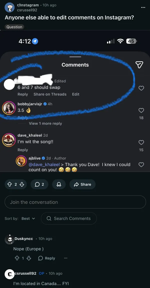 Instagram seems to be rolling out the ability to edit comments for a portion of users, based on multiple recent reports on Reddit, X, and Threads.