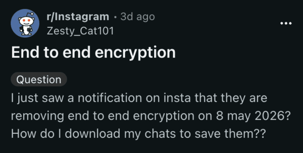 Reactions online are largely negative, with Redditors questioning this sudden move, and posts quickly went viral on X. People fear that the removal of encryption could mean the beginning of widespread surveillance and control. There’s also no information on whether messages sent before May 8 will remain protected by end-to-end encryption.