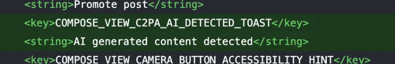 This comes from app researcher Aaron, who goes by @aaronp613. He shared a screenshot of the string along with a key called COMPOSE_VIEW_C2PA_AI_DETECTED_TOAST. The “TOAST” part in that key stands out. In mobile app terms, a toast is just a light, temporary notice that doesn’t block you. So it feels more like a gentle reminder than a full barrier, maybe encouraging folks to use X’s “Made with AI” label instead of stopping the post cold.